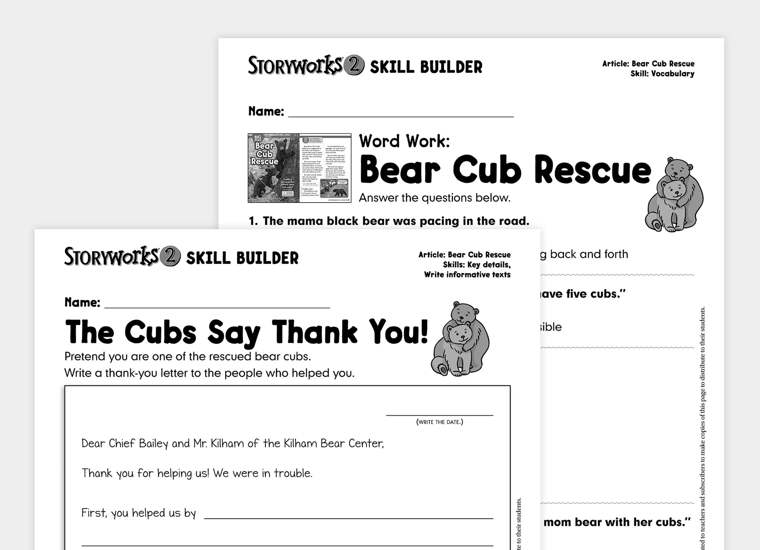 Practice key reading and writing skills with activity pages.